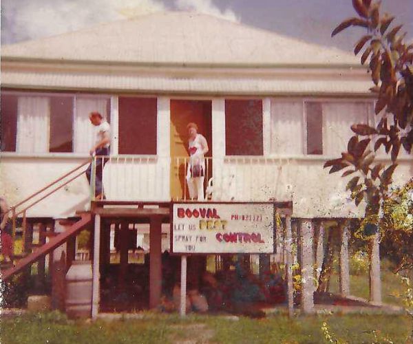 Jim Winter Senior started the business in 1973 and at that time it was called Booval Pest Control because he ran the first office from his home in Booval, Ipswich. You can see the photo above of the very first advertising signage attached to the balcony of his house. There is also a photo of the first pest control ute.
