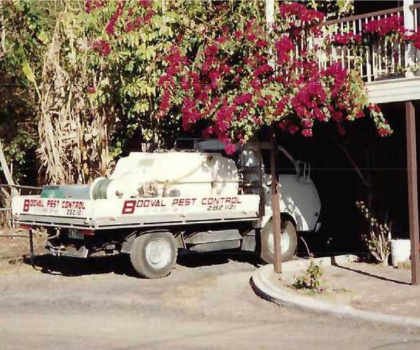 Jim Senior and his son, also named Jim, worked together for five years in the early 90’s and then Jim Senior retired for a well-earned rest. Jim Junior and wife Donna moved the business office from Booval to Redbank Plains, but it wasn’t until the office moved for a third time to Forest Lake in 2000 that a name change was made. We have a photo of the first pest control truck used during the Redbank Plains office years with it’s Booval Pest Control signage.